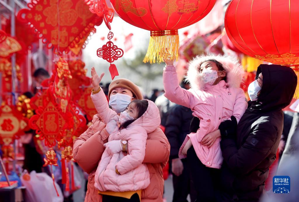 1月18日,人們在河北省石家莊市正定縣的年貨大集上購置紅燈籠等新年飾品。新華社發(fā)(張曉峰 攝)